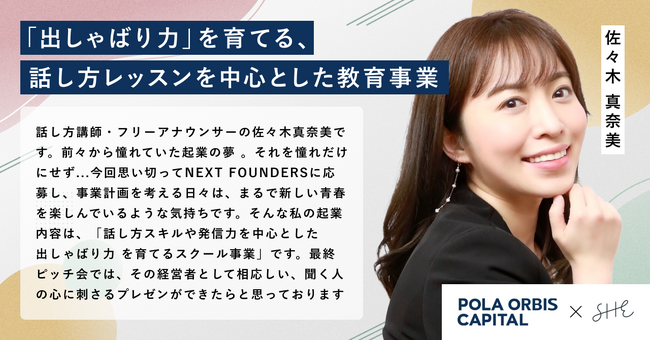 SHE、ポーラ・オルビスホールディングスと協業の女性起業家輩出プロジェクト「NEXT FOUNDERS」最終ピッチ会を6月17日(土)に開催!