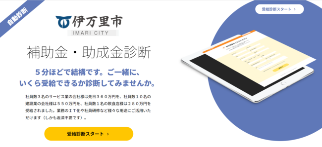 株式会社ライトアップ(本社:東京都渋谷区、代表取締役社長:白石崇、以下ライトアップ)は、2022年2月21日より、「佐賀県伊万里市」へ、助成金自動診断システム「Jシステム」をOEM提供し、共同で中小零細企業経営者さまへの補助金・助成金の活用支援を実施することで合意いたしました。
