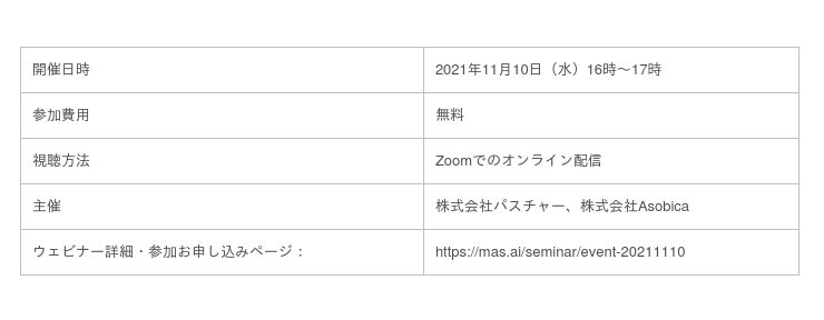 ウェビナー詳細・参加お申し込みページ:https://mas.ai/seminar/event-20211110