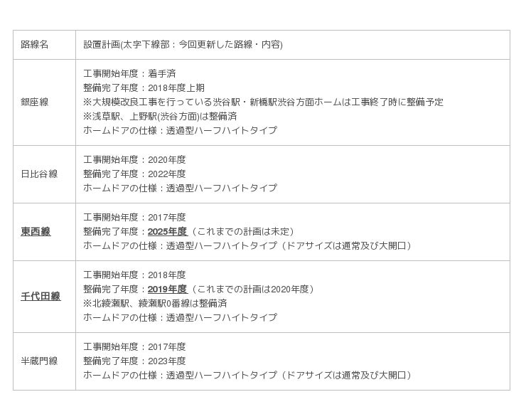 東京メトロ全路線全駅のホームドア設置計画を決定しました