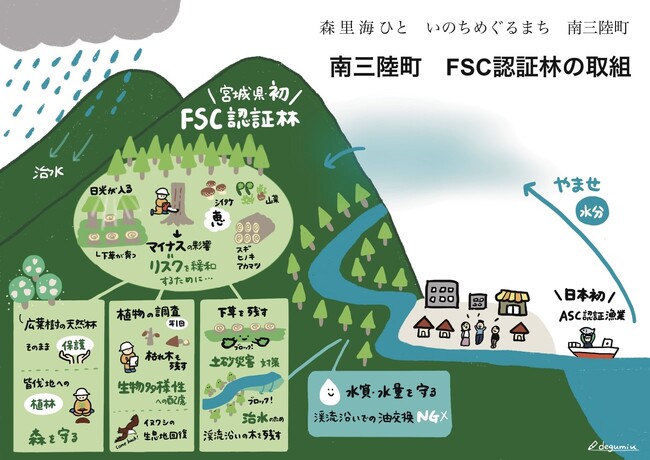 LEAP を実施して抽出した情報をイラスト化した南三陸森林管理協議会の森林管理