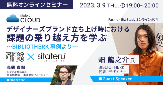 衣服・ライフスタイル産業が抱える社会課題を解決するクラウドサービス「sitateru CLOUD」を提供するシタテル株式会社(本社:熊本県熊本市、代表取締役:河野秀和、以下シタテル)は、デザイナーズブランド向けに、「デザイナーズブランド立ち上げ時における課題の乗り越え方を学ぶ 〜BIBLIOTHERK 事例より〜」と題し、ファッションビジネス学会の「+10Y研究部会」と共催で無料オンラインセミナーを3月9日(木)に開催いたします。