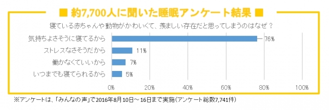 また、寝ている赤ちゃんや動物がかわいくて、羨ましい存在だと思ってしまうのは、 「気持ちよさそうに寝ているから」であることも、約7,700人へのアンケートによって明らかになりました。