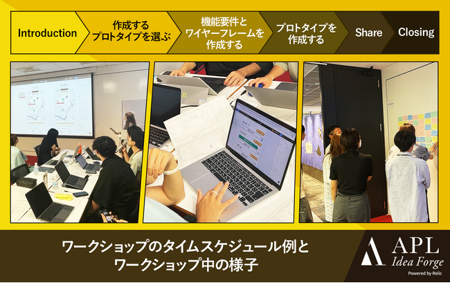 日本企業の新規事業開発やイノベーション創出を支援する事業共創カンパニーである株式会社Relic(本社:東京都渋谷区、代表取締役CEO:北嶋貴朗、以下、Relic)は、本日より、事業アイデアからデザインプロトタイプ制作を実践するデザインワークショップ「APL Idea Forge」を提供開始しました。本ワークショップは事業アイデアを事業検証へと進めるためのワイヤーフレームやデザインプロトタイプ制作を実際の作業を交えて単日で行うもので、デザイン知識を持たない方にも取り組んでいただけます。