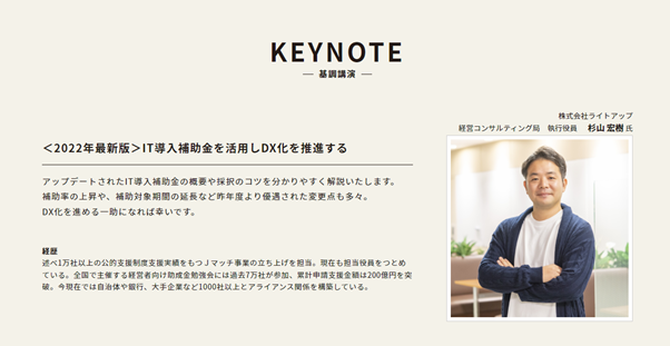 インフォマート主催 DXカンファレンス 第4回Less/on.『「IT 導入補助金」の活用と経理財務部門のデジタル化を学ぶ一日』に執行役員 杉山宏樹が登壇