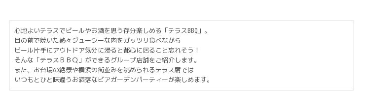 ダイヤモンドダイニンググループ(本社:東京都港区、代表取締役社長:松村 厚久)が運営する下記店舗では、テラス席でBBQやビアガーデンをお楽しみいただける各種プランをスタートいたします。