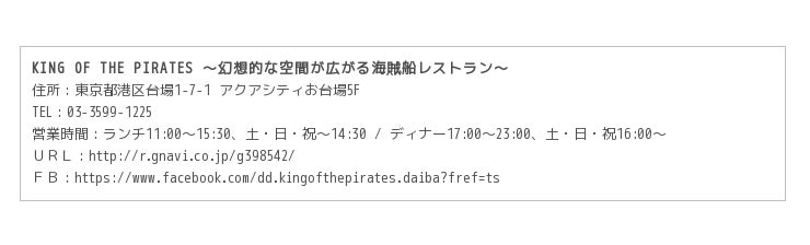 パイレーツビアガーデンプラン 2H飲み放題つき 3,500円 (税抜)