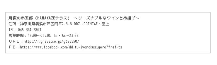 HAMAKAZEテラス限定コース 全8品 2H飲み放題つき 3,990円 (税抜)