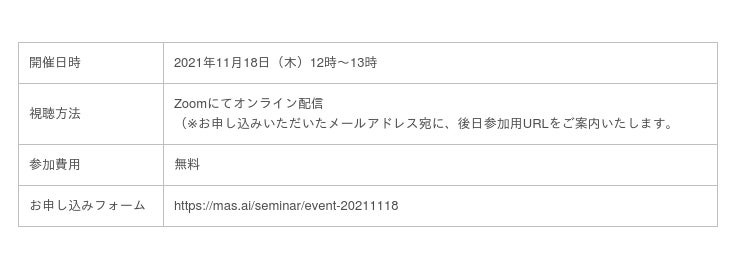 お申し込みフォーム:https://mas.ai/seminar/event-20211118