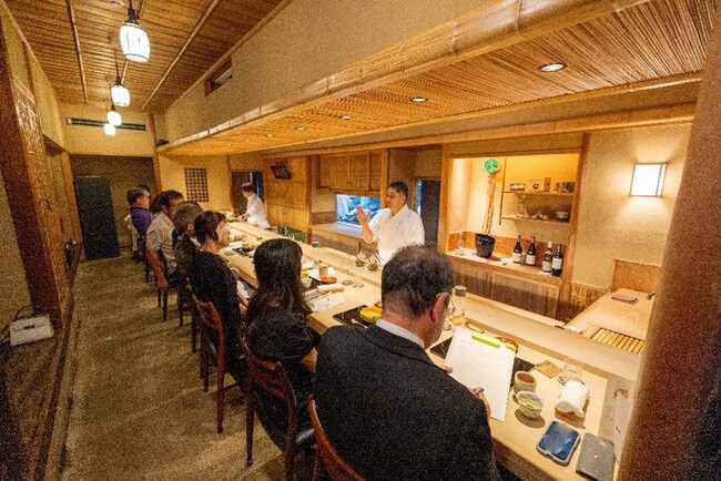 二人のミシュラン料理人から、京料理とフレンチの一皿一皿はもちろん、それぞれの出汁の取り方のレクチャーなども楽しむコラボレーションディナーを開催。今回のために特別にセレクトしたペアリングのドリンクも好評で、秋の美食を堪能する贅沢な時間をお過ごしいただきました。
