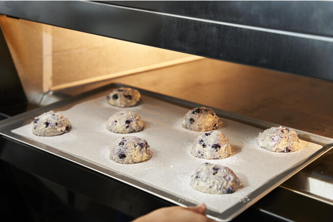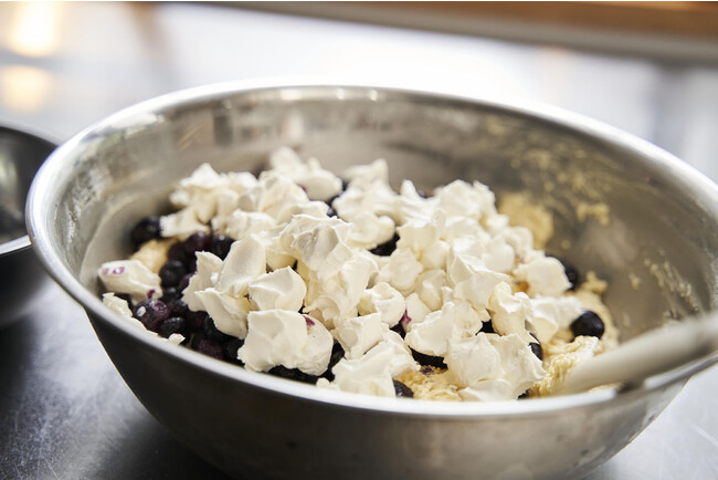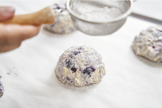 一般的に知られている筒型の「イングリッシュスコーン」とは違って、クリームチーズをたっぷり入れた生地にフルーツなどの具材を混ぜ込んだ、ハワイで人気のスコーンです。