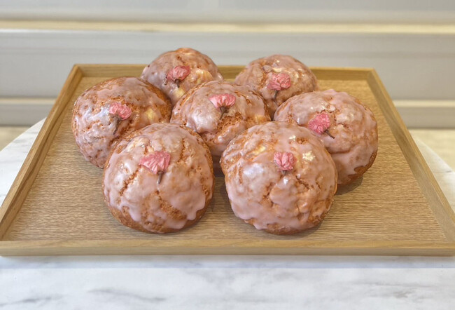 さくら風味の生地にクリームチーズとあんこをたっぷり練りこみ、かわいいさくらの花びらをトッピングした、