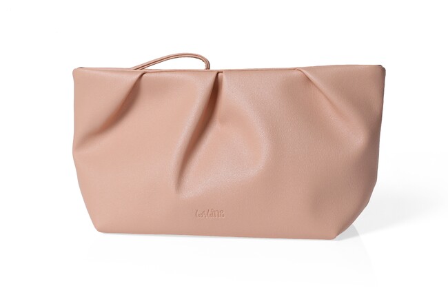コーラルピンクが可愛いコスメがたっぷり入るギャザーポーチ