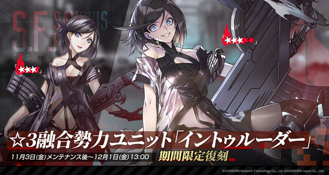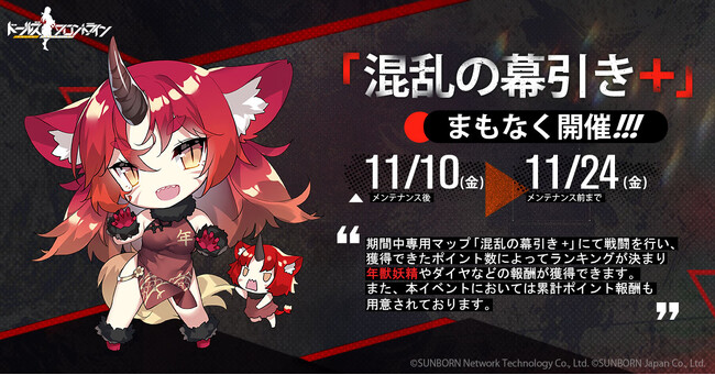 株式会社サンボーンジャパンは、スマホ向け戦略型シミュレーションゲーム『ドールズフロントライン(以下、「ドルフロ」)』において、「11月10日(金)メンテナンス後」より専用マップでポイントを競うランキング戦「混乱の幕引き+」を開催することをお知らせいたします。
