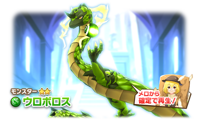 今回のWANTED対象モンスターは、新血統シンリュウ種「ウロボロス」(緑オーラ)です。NPC再生のタブに登場する「メロ」から再生できるほか、LINEの友だちからも確率で再生可能です。新血統シンリュウ種「ウロボロス」を再生することで「ウロボロスのハート」を大量に獲得できます。WANTED再生は最大6回まで可能です。