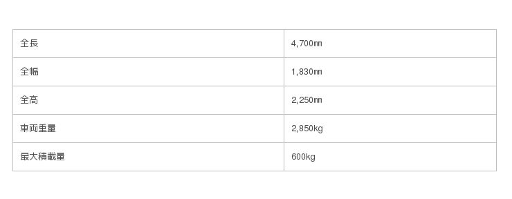 1. 普通免許保持者(中型免許は不要)であれば、だれでも運転可能な車両規格