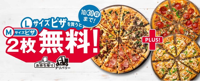 「Lサイズピザを買うとMサイズピザ2枚無料!」3度目は、10月30日(日)の最終日まで、あと3日となりました。10月24日(月)のスタート以来、たいへんご好評いただき、先週同日比で、開始初日の24日は約1.6倍のご注文を、25日は約2倍、26日は約1.7倍のご注文をいただけました。これは、事前に立てたキャンペーン予測を上回るご注文数となっています。お客様のご愛顧たいへん感謝しております。注文数は、予測を上回っておりますが、過去2回の反省を踏まえて、今回は、しっかり人員体制を強化いたしました。その改善の成果もあり、店舗運営では、現在のところ、過去のような注文受付停止や特別な遅配を起こすことなく、順調に実施できております。この週末は、ハロウィンとも重なります。たくさんご注文をいただいている状況から、お客様が、職場やおうちでハロウィンパーティーにピザを囲んで大いに盛り上がっていただけるよう、一層の人員体制を強化することを決定し、準備を整えているところでございます。過去のように、お客様をお待たせして失望させることのないよう全力で取り組んでまいります。ガンガンご注文いただくのをお待ちしております。