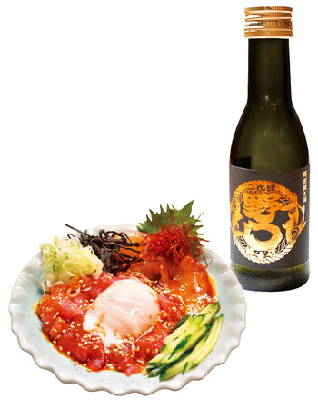 オリジナルの特別純米酒は味わいのバランスが抜群。自家製ユッケだれに漬け込んだこだわりのまぐろとよく合う、キリっとした飲み口の日本酒です。