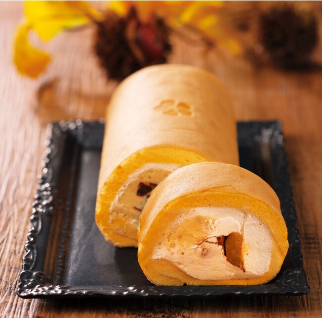 国産栗を使用したオリジナルマロンクリームと渋皮煮を生クリームと一緒にしっとり生地で包みました。濃厚なクリームと栗の美味しさを楽しめる、堂島ロールとのコラボ商品です。