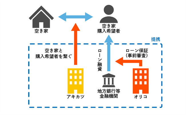 そこで、自治体と連携した空き家データを保有し、空き家の所有者と購入希望者をマッチングする Web 情報プラットフォーム「アキカツナビ」等を提供する空き家活用株式会社とオリコが、空き家購入意向者の状況や金融商品のあり方とマーケットについて検討を重ね、『アキカツローン』を商品化いたしました。