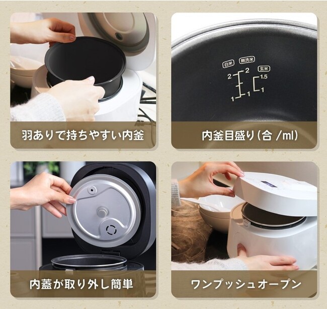 既存の人気炊飯器から新色のブラックが登場した2.0合炊き炊飯器と、1人暮らしの方や小さなお子様がいるご家庭におすすめの1.5合炊飯器を新たに発売します。