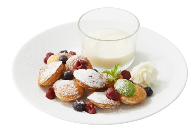 一口サイズのミニパンケーキを濃厚なクリームチーズ風ソースにディップしながら食べる、楽しいパンケーキ。ミックスベリーがアクセントです。