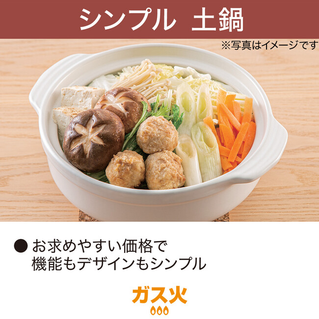 食卓に合わせやすいシンプルなデザインで、飽きがこず使いやすいガス火専用の土鍋です。寒い日の食卓にいかがでしょうか。