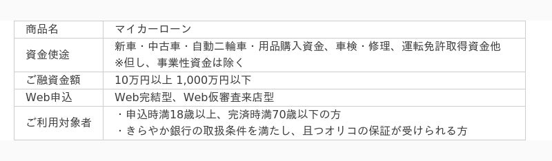 株式会社オリエントコーポレーション(東京都千代田区、代表取締役社長:飯盛 徹夫、以下「オリコ」)は、株式会社きらやか銀行(山形県山形市、取締役頭取:川越 浩司、以下「きらやか銀行」)と提携し、Web申込に対応したマイカーローン、教育ローン、多目的ローン、リフォームローンの取り扱いを2024年1月15日より開始いたします。Web完結型商品とWeb仮審査来店型商品をご用意しており、お客さまのニーズに合った対面・非対面それぞれのサービスにより、利便性向上を図ります。