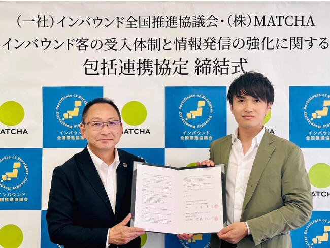訪日外国人向けメディア「MATCHA」を運営する株式会社MATCHA(本社:東京都中央区、代表取締役社長:青木優)と、「インバウンドに優しいおもてなし認定証」制度を全国展開する一般社団法人インバウンド全国推進協議会(大分県、会長:二宮謙児)は、訪日外国人旅行者の受入体制と情報発信の強化を全国的に連携して取り組むための「包括連携協定」を締結しました。