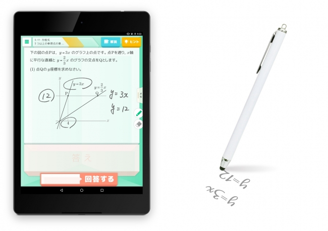 世界初の人工知能型教材Qubena(キュビナ) は人工知能を用いた算数数学のタブレット教材です。 実際のノートと同じようにペンを使い手書きで学習が可能。生徒が解答するプロセスをAIが記録しながらリアルタイムで解析。 同じ不正解でも、単なる計算間違いなのか、そもそも解法が習得できていないのかといったことまで分析し、生徒が解くべき最適な問題へと誘導します。年齢・学校で学ぶ分野にとらわれず、自分の力で考えて進めていける課題だからこそ、学年を超えた学習が可能に!