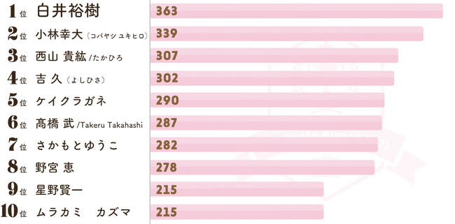 ■「OurPhoto Award 2023 年間人気フォトグラファー」結果(一部)