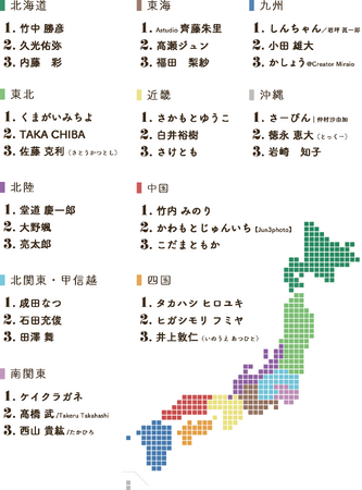 地域別ランキンングでは、お住まいの地域や旅行予定のエリアで活躍するフォトグラファーを知ることが可能です。撮影シーンに合わせて、各エリアで活躍するフォトグラファーをチェックしてみてはいかがでしょうか。
