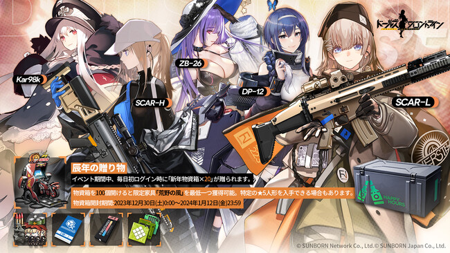 株式会社サンボーンジャパンは、スマホ向け戦略型シミュレーションゲーム『ドールズフロントライン(以下、「ドルフロ」)』において、年末からお正月にかけて開催されるイベントやキャンペーンをお知らせいたします。