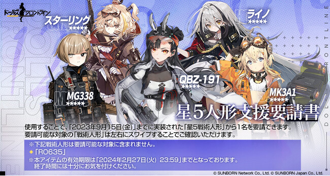 「2023年12月29日(金)メンテナンス後」より「星4人形支援要請書」「星5人形支援要請書」がショップにて期間限定で販売されます。