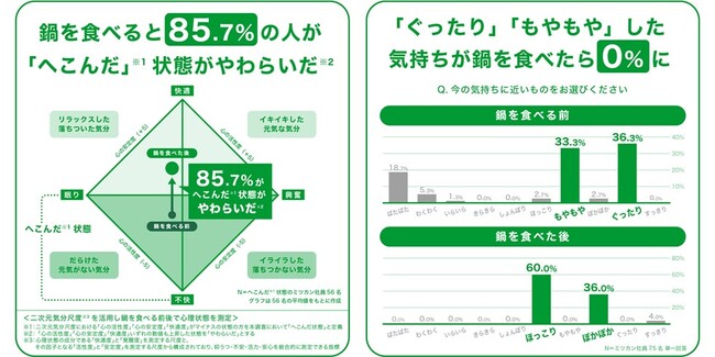 〜鍋を食べると、85.7%の人がへこんだ※1状態がやわらぐ※2という試験結果に!〜