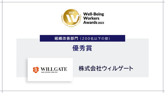 ウィルゲート、株式会社ラフールが主催する『Well-Being Workers Awards 2023』にて、「組織改善部門優秀賞」を受賞