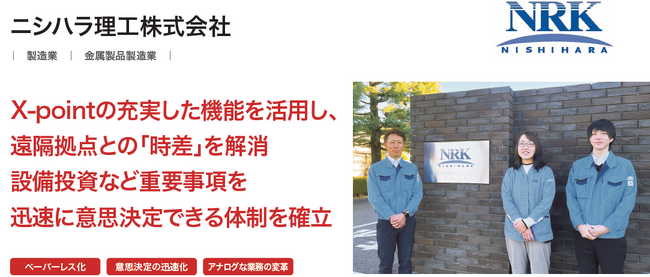 ニシハラ理工株式会社が、ワークフローシステム「X-point」導入により150種類以上の紙の帳票をペーパーレス化、意思決定の迅速化を実現