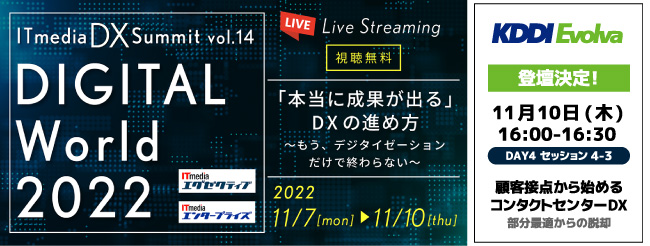 11月10日『ITmedia DX Summit Vol.14/ DIGITAL World 2022』登壇、顧客接点から始めるコンタクトセンターDX 〜部分最適からの脱却