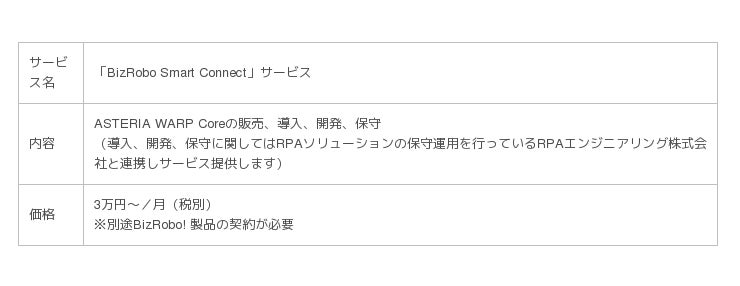 ■「BizRobo Smart Connect」サービスの概要・特徴(提供開始日 2017年9月6日)
