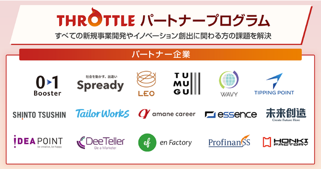 今後、より一層スピード感を持って課題を解決していくため、新規事業開発をリードするパートナーと連携し「Throttle」を活用したイノベーションマネジメントの課題解決を促進するため、ビジネスマッチング制度「Throttleパートナープログラム」を開始することに決定いたしました。