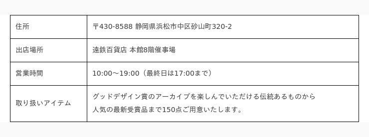 遠鉄百貨店(静岡県浜松市)× GOOD DESIGN STORE TOKYO by NOHARAのポイント