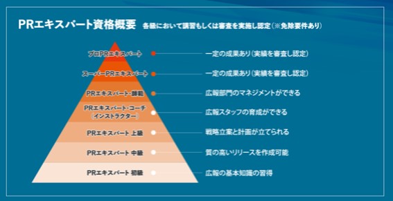 さらに特典として、講座を修了した方は、広報パーソンの認定資格「PRエキスパート生級」の取得(要試験)も可能です。合格した方で必要とする場合は、証明書(ディプロマ)を実費(5,500円)で発行します。