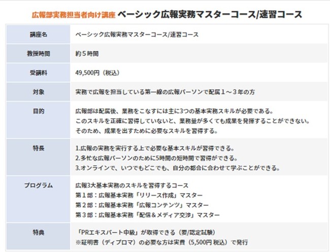 eラーニング「ベーシック広報実務マスターコース/速習コース」