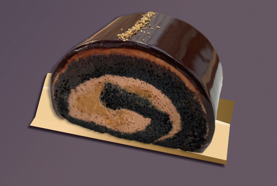 生地ヘ竹炭を練り込み焼き上げました。そしてキャラメルクリームには“くるみ”と“山椒”でアクセント。チョコレートと和の素材とのマリアージュをぜひお楽しみください。ロンネフェルト紅茶との相性もぴったり♪