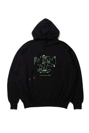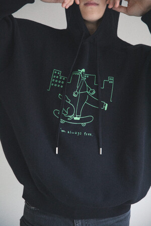 活動の拠点を福岡から東京に移して約3ヶ月。街や人、お店など色々な物から刺激を受け、「FREEDOM」をテーマにイラストを描きました。東京に住んでみて感じたことは、忙しい毎日を過ごす中で、リフレッシュする時間が大切ということ。のんびりとした時間を過ごすことは、明日へのエネルギーになると思っています。活気に満ち溢れていて、多様な文化が入り混じる東京で過ごす毎日は刺激的だからこそ、休日は自然を感じられる場所を訪れたり、自分の心が満たされるような綺麗な景色をみることを心がけています。今回書き下ろしたイラストは、私が思う「都会生活の中でも、リフレッシュする時間を大切にする人」を描きました。ニットに入ったイラストを目にすることが一休みする時間となり、誰かの活力となるような一枚になれば嬉しいです。