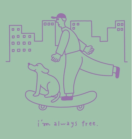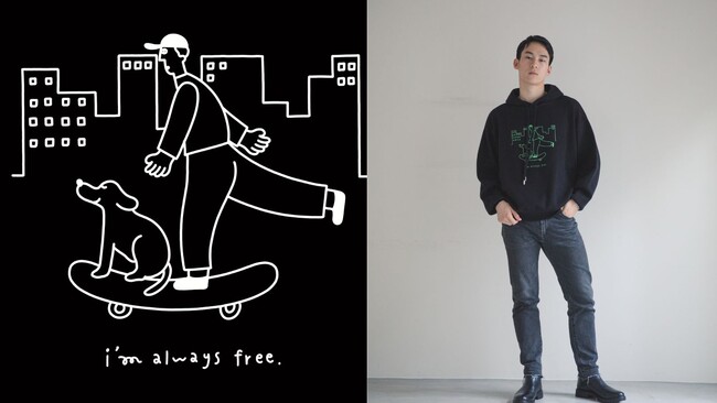 プリントしたグラフィックは、イラストレーターのSaki Morinagaが「FREEDOM」をテーマに書き下ろしました。都会で忙しい毎日を過ごす人が、愛犬と共にリフレッシュする休日のひとときをイメージしています。