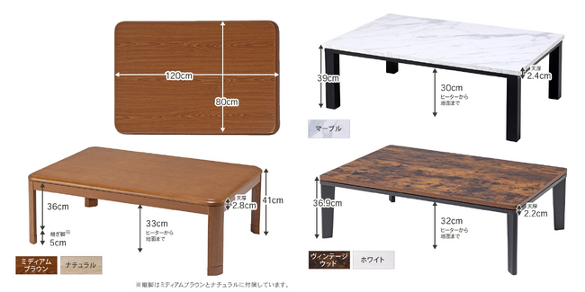 ※継ぎ脚のあるサイズは120×80と105×75(単位:cm)のみのご用意となります。ご了承ください。