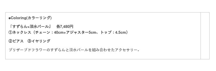 そのほかにも、期間限定で本物の花を使ったアクセサリーや雑貨をそろえる[Coloring(カラーリング)]が5月10日(水)まで登場(1階 婦人洋品売場)。