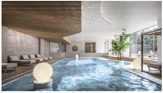 自家源泉・箱根十七湯のひとつである宮城野温泉を引湯した露天風呂付温泉大浴場とサーマルプールをご用意。温泉をつかった温かいサーマルプールは昼と夜で異なるシーンを演出するくつろぎのプールへと生まれ変わりました。各種サウナとプールから繋がるウッドデッキでは、自然を感じてリラックスした時間をお過ごしいただけます。