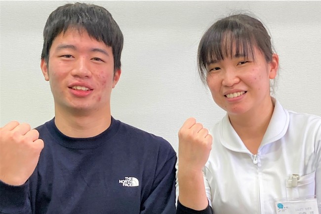 【左:九州学院高等学校 剣道部の鮫島雅貴選手、右:鮫島雅貴選手を担当する堺整骨院 小郡院 近藤渚先生】